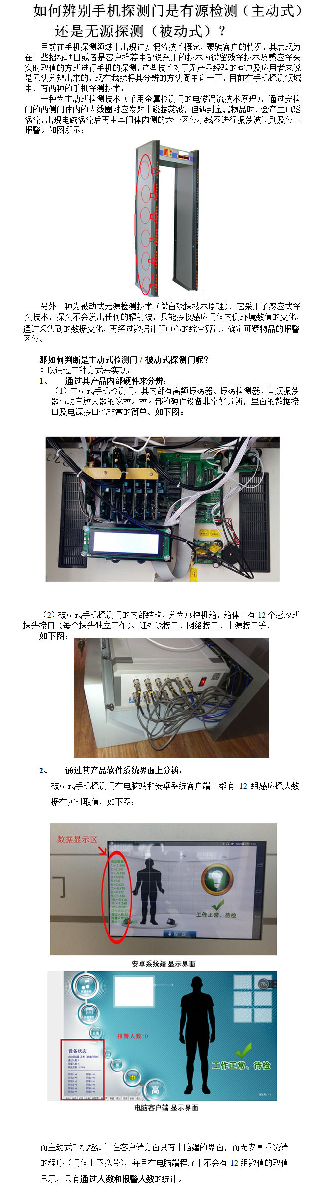 被動與主動區(qū)別方法文檔說明將貝谷電磁預警器按照如下方法分別測量被動式手機探測門和主動式手機探測門,觀察預警器是否報警。(1)在使用貝谷電磁輻射預警器時,需要將其靜置在一個平面上,等待3秒鐘,使得貝谷電磁輻射預警器數(shù)值穩(wěn)定,無干擾情況下,觀察預警器顯示的數(shù)值,查看預警器是否報警; 切勿將貝谷電磁輻射預警器拿在手中測量,人手會有輕微的顫動,會對預警器造成干擾,影響測量結(jié)果。 (2)可將貝谷電磁輻射預警器安置在手機探測門的中間通道位置,如圖A點位置,靜置在平面上3秒鐘,待預警器數(shù)值穩(wěn)定,查看預警器是否報警; (3)將貝谷電磁輻射預警器放置在手機探測門的門板兩側(cè)的平面物體上,如圖B點的位置,靜置在平面上3秒鐘,待預警器數(shù)值穩(wěn)定,查看預警器是否報警。 (4)測量手機探測門通道內(nèi)的電磁輻射值以檢測人體通過手機探測門時是否有輻射,測量手機探測門的門板兩側(cè)輻射值以檢測手機探測門周圍是否存在輻射。 驗證工具推薦![]() 購買地址 |